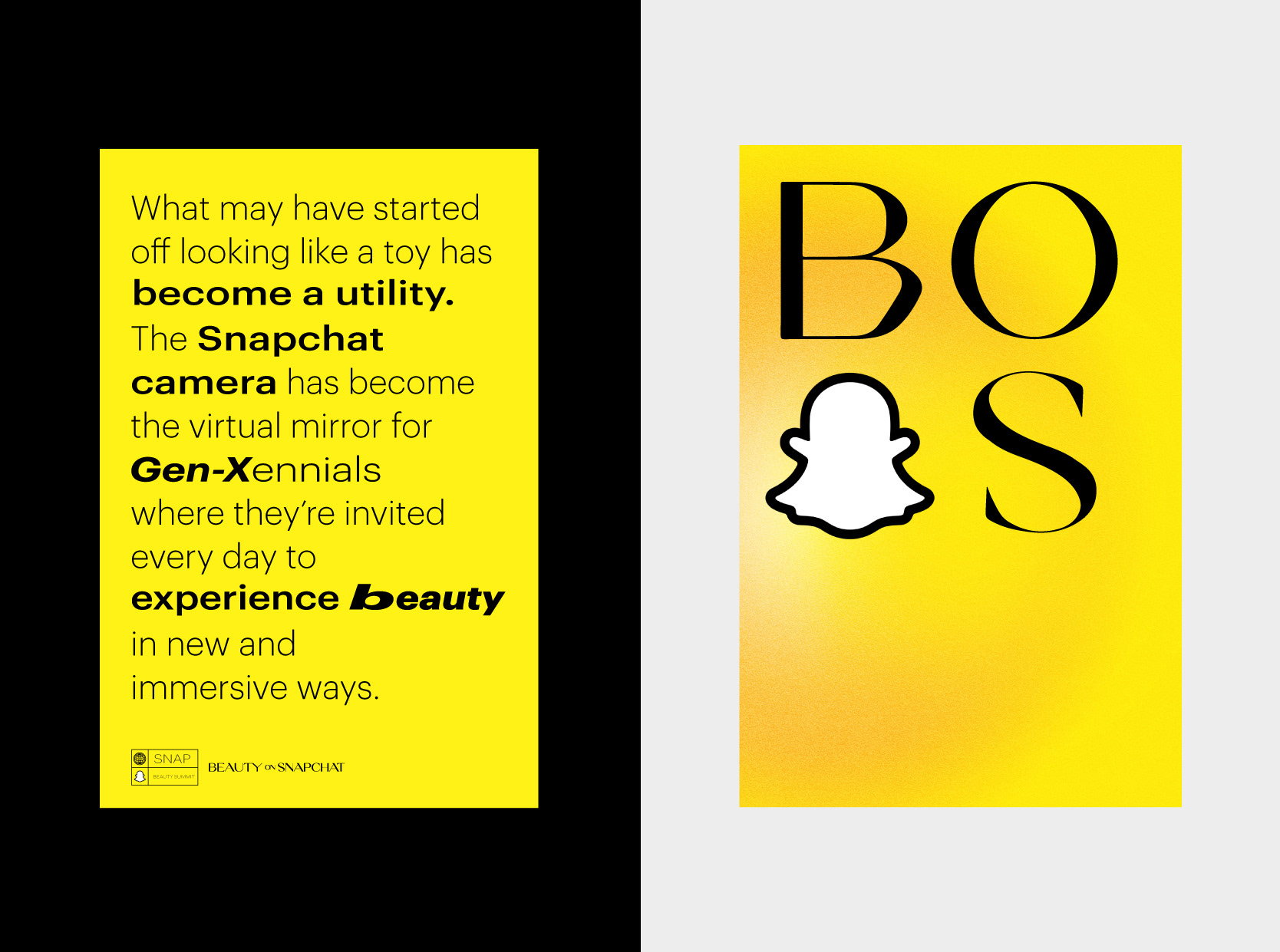 The Snapchat Beauty Summit is an annual event that unites leaders in beauty, personal care, health, and wellness marketing to explore innovative additions to beauty marketing on the Snapchat platform. The summit spotlights augmented reality (AR) and its transformative potential within the beauty industry. During the global pandemic, the summit transitioned to a fully virtual format, prompting the need for a digitally driven visual identity. I took on the challenge of designing a concept visual identity tailored specifically for this virtual summit. Although the pandemic influenced the final implementation, this project served as a valuable exercise in branding consumer packaged goods (CPG) within the Snapchat ecosystem.