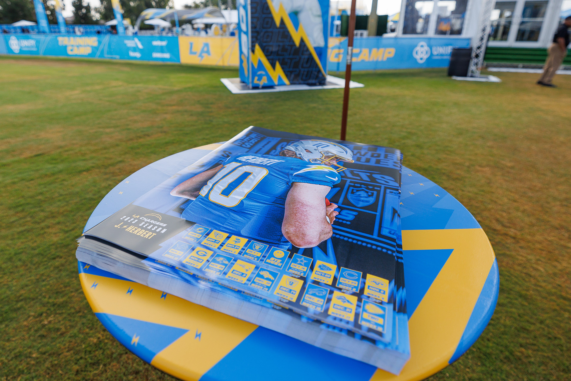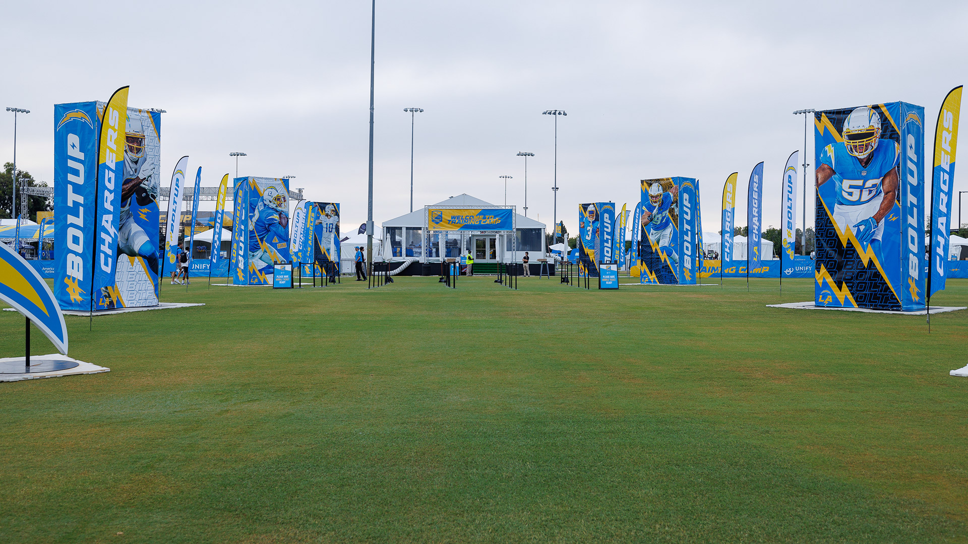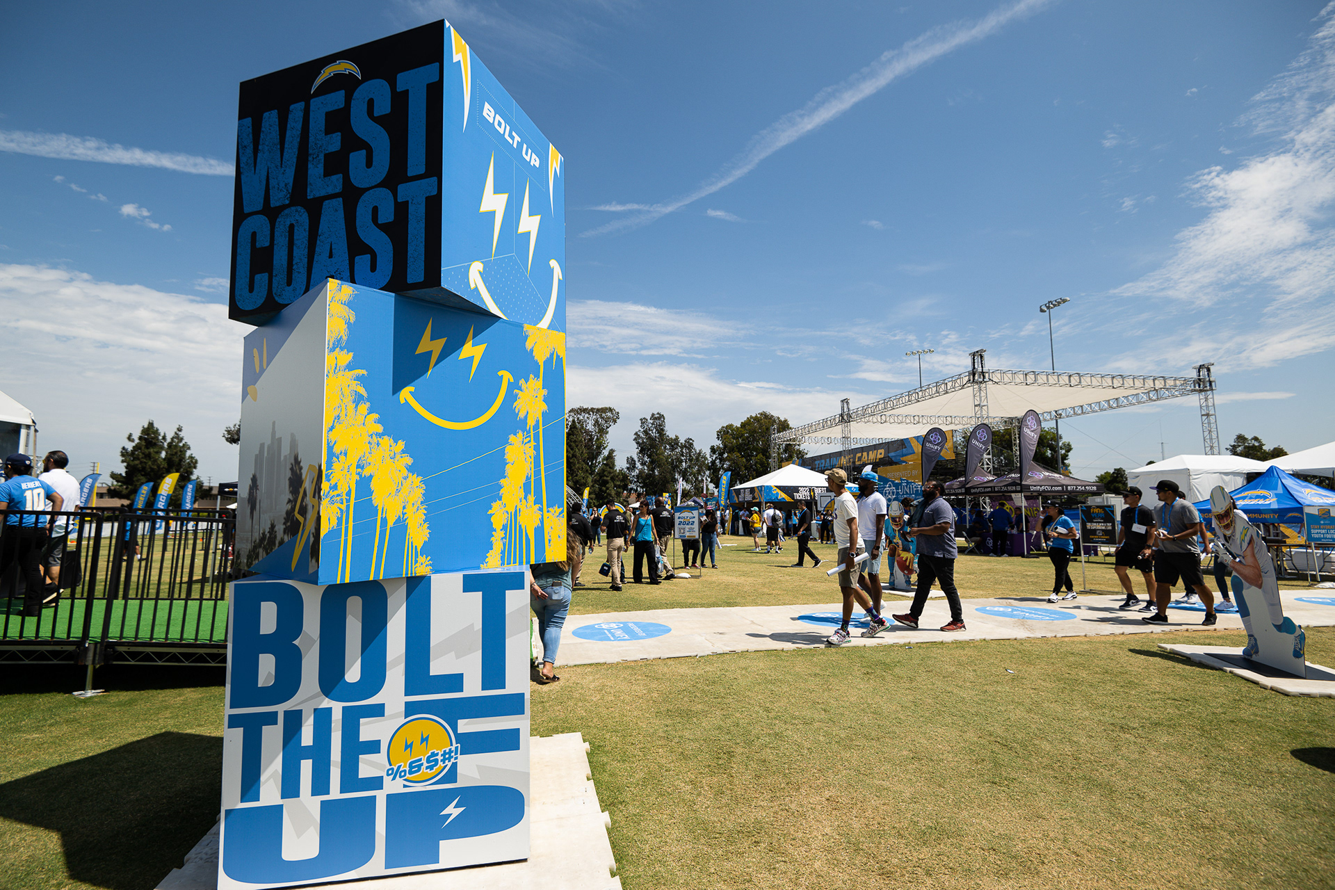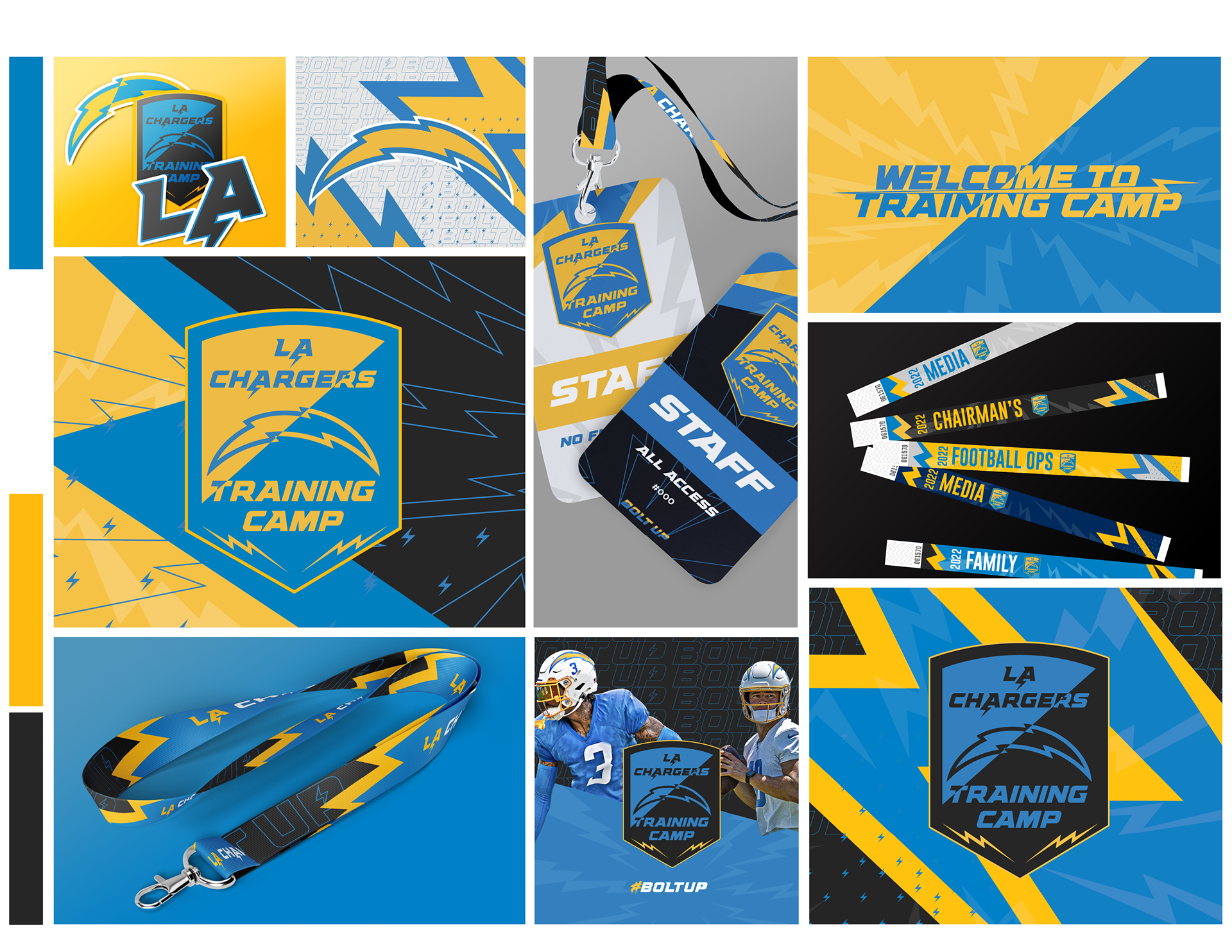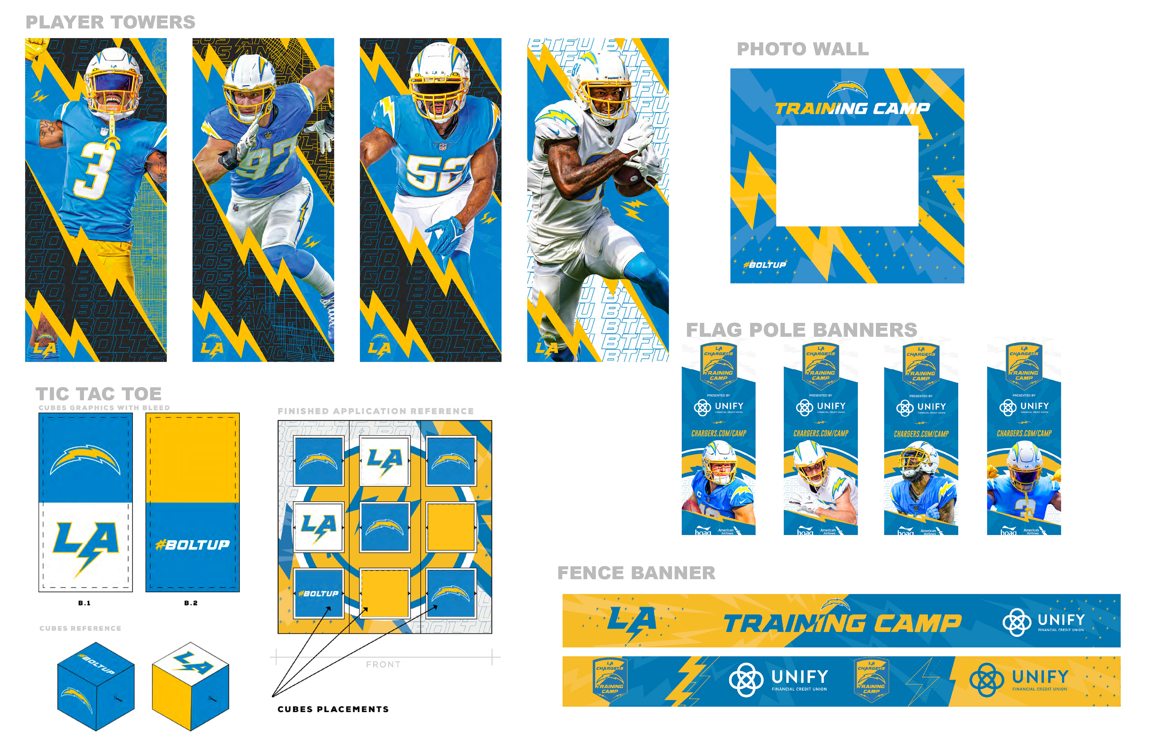 For the LA Chargers, I shaped the visual identity of this pivotal tentpole event for 3 years, ensuring that the environment reflected the energy, discipline, and high-performance mindset essential to success. Leading the creative direction, I developed an immersive experience that seamlessly integrated the Chargers' brand with the intensity of training camp. From conceptualizing the overall aesthetic to crafting bespoke graphic elements and redesigning the logo, my work transformed the training camp space into a dynamic and motivational setting. Through a cohesive and impactful design, I reinforced the team's identity while fostering a sense of unity and inspiration among players, staff, and fans. This project underscores my ability to enhance spaces through purposeful and visually compelling design, strengthening the Chargers' brand and its connection to the game.