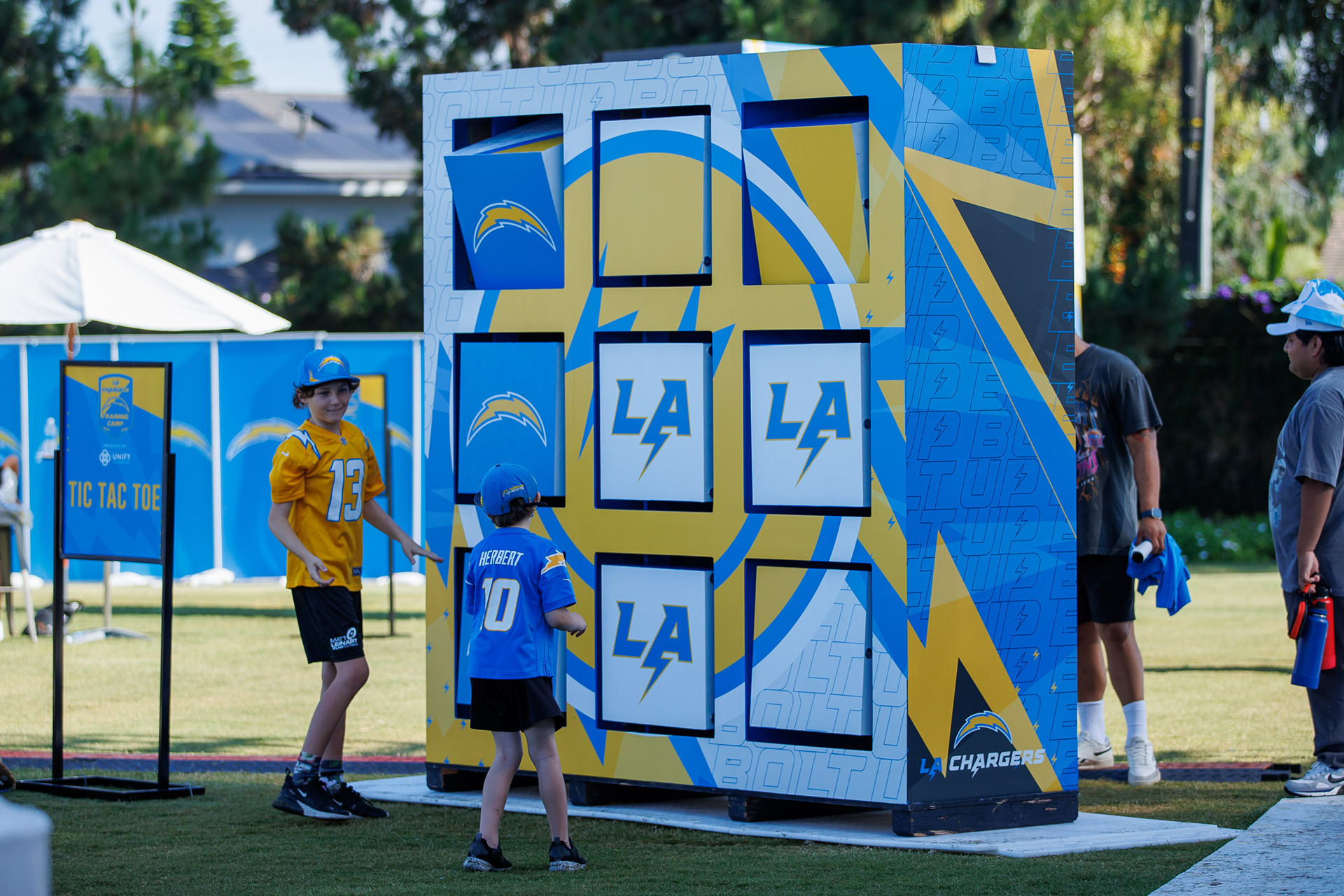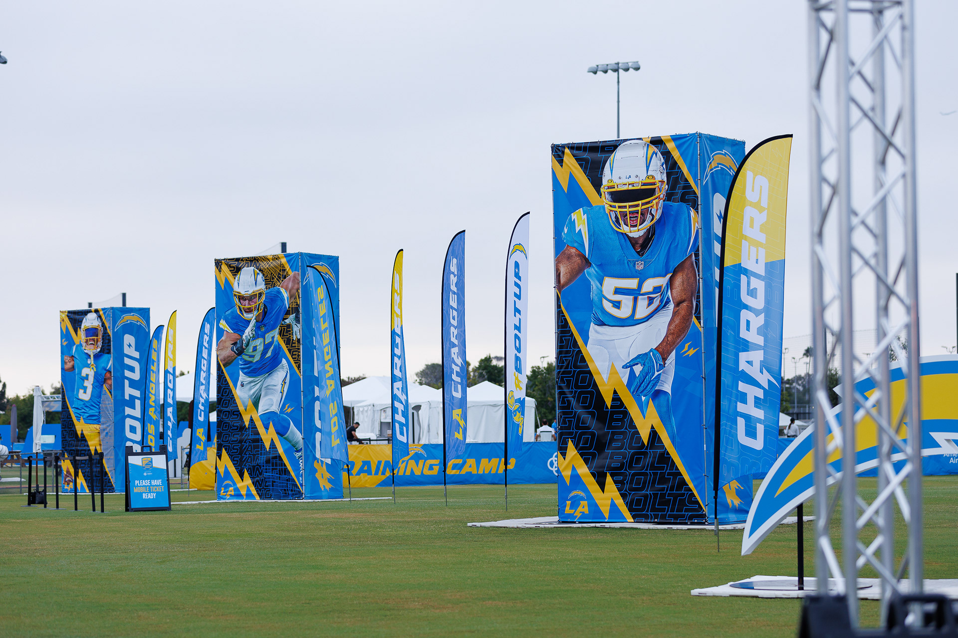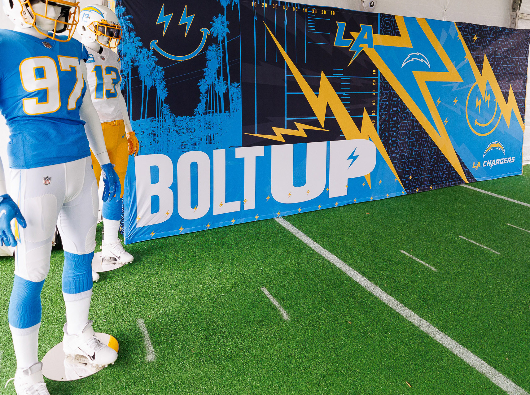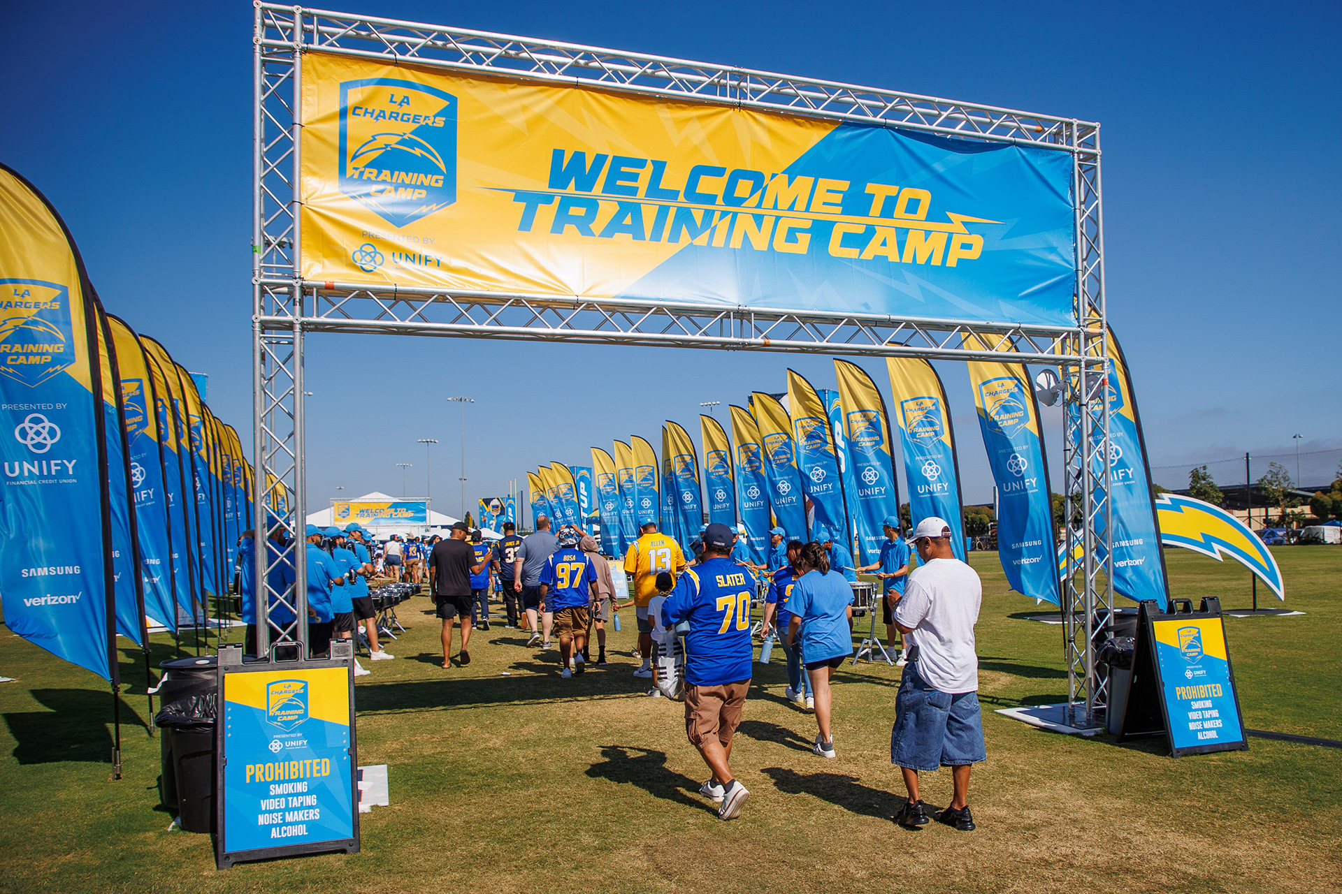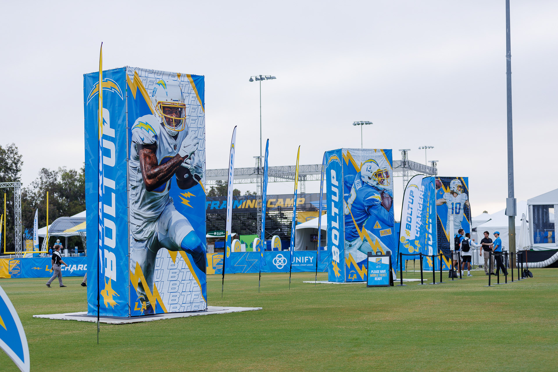 For the LA Chargers, I shaped the visual identity of this pivotal tentpole event for 3 years, ensuring that the environment reflected the energy, discipline, and high-performance mindset essential to success. Leading the creative direction, I developed an immersive experience that seamlessly integrated the Chargers' brand with the intensity of training camp. From conceptualizing the overall aesthetic to crafting bespoke graphic elements and redesigning the logo, my work transformed the training camp space into a dynamic and motivational setting. Through a cohesive and impactful design, I reinforced the team's identity while fostering a sense of unity and inspiration among players, staff, and fans. This project underscores my ability to enhance spaces through purposeful and visually compelling design, strengthening the Chargers' brand and its connection to the game.