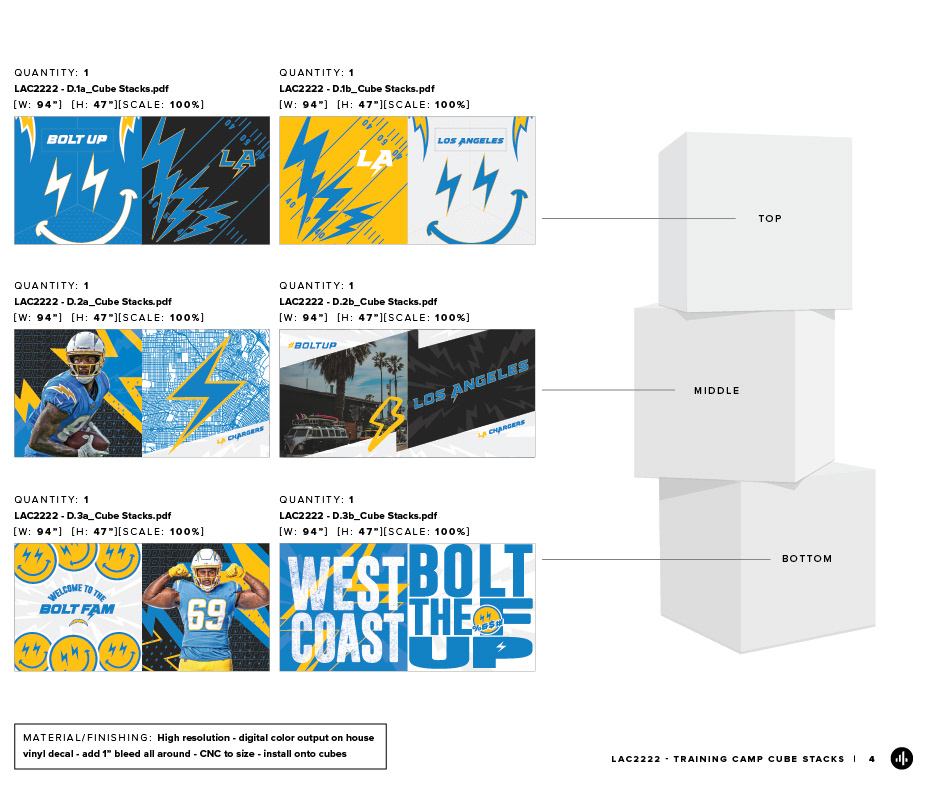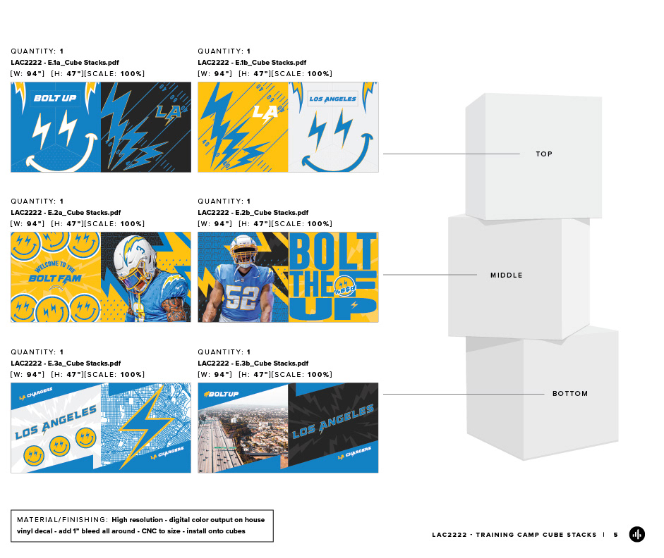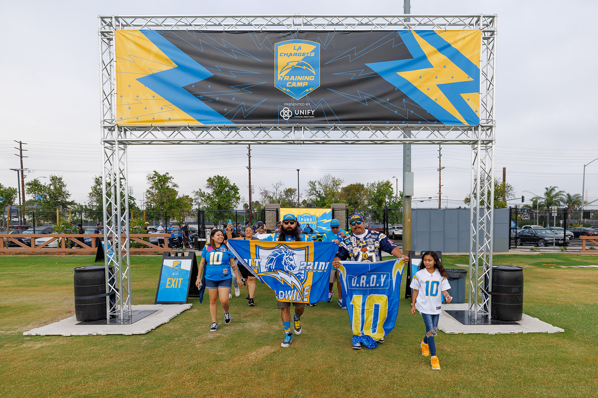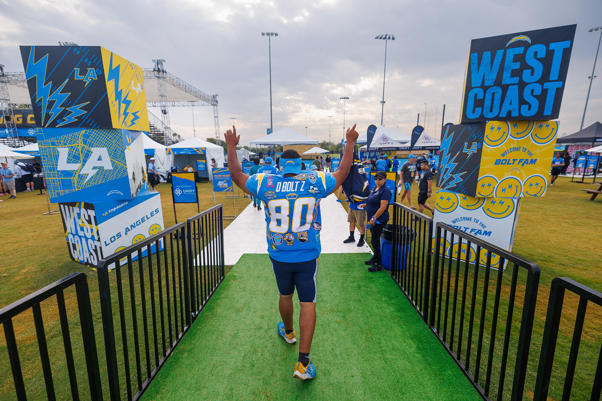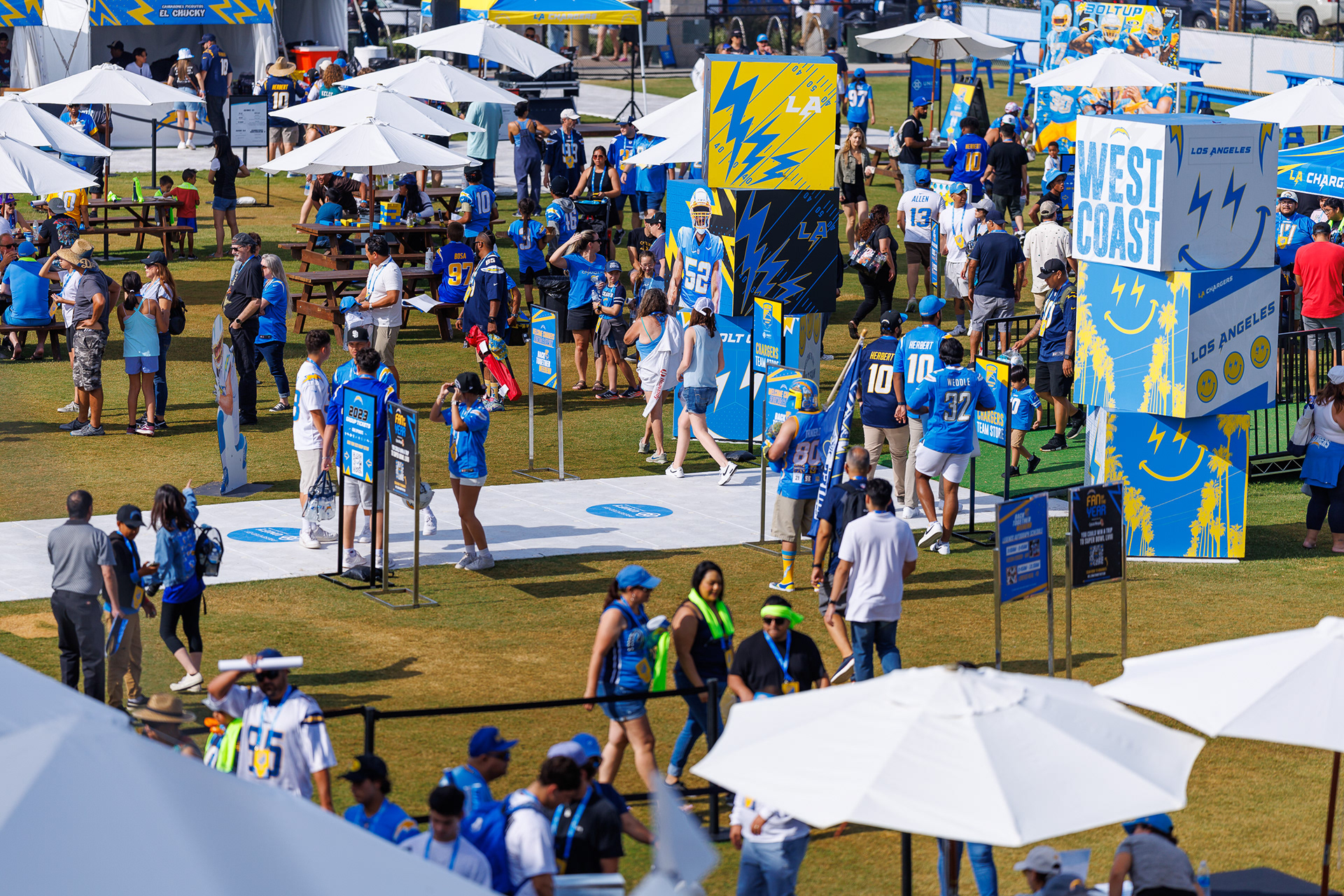 For the LA Chargers, I shaped the visual identity of this pivotal tentpole event for 3 years, ensuring that the environment reflected the energy, discipline, and high-performance mindset essential to success. Leading the creative direction, I developed an immersive experience that seamlessly integrated the Chargers' brand with the intensity of training camp. From conceptualizing the overall aesthetic to crafting bespoke graphic elements and redesigning the logo, my work transformed the training camp space into a dynamic and motivational setting. Through a cohesive and impactful design, I reinforced the team's identity while fostering a sense of unity and inspiration among players, staff, and fans. This project underscores my ability to enhance spaces through purposeful and visually compelling design, strengthening the Chargers' brand and its connection to the game.