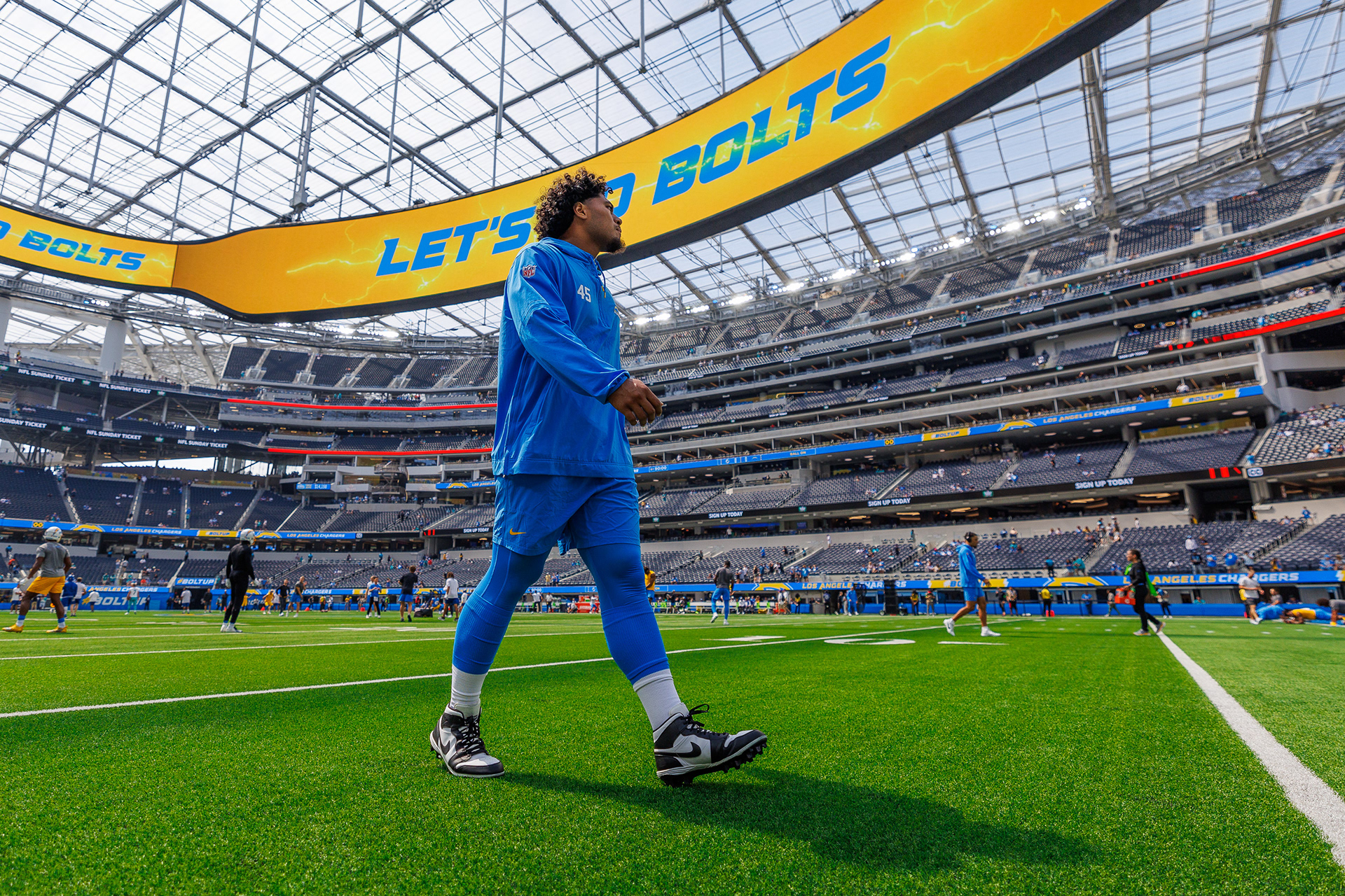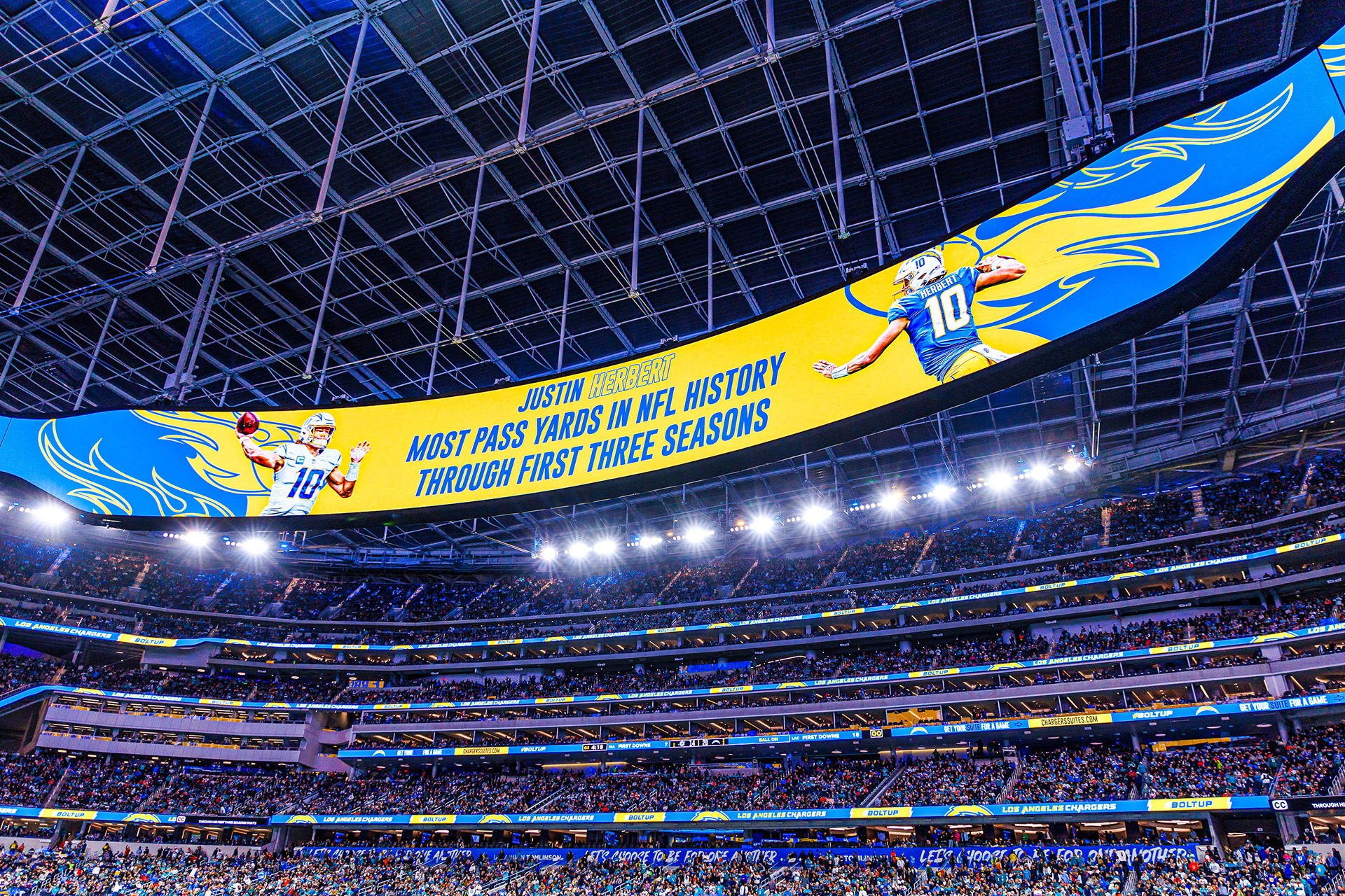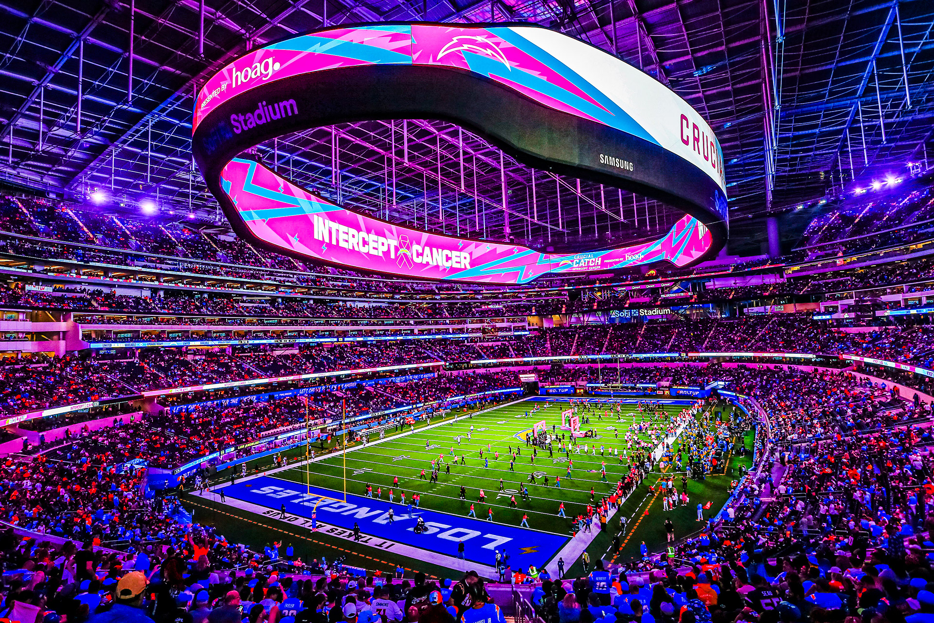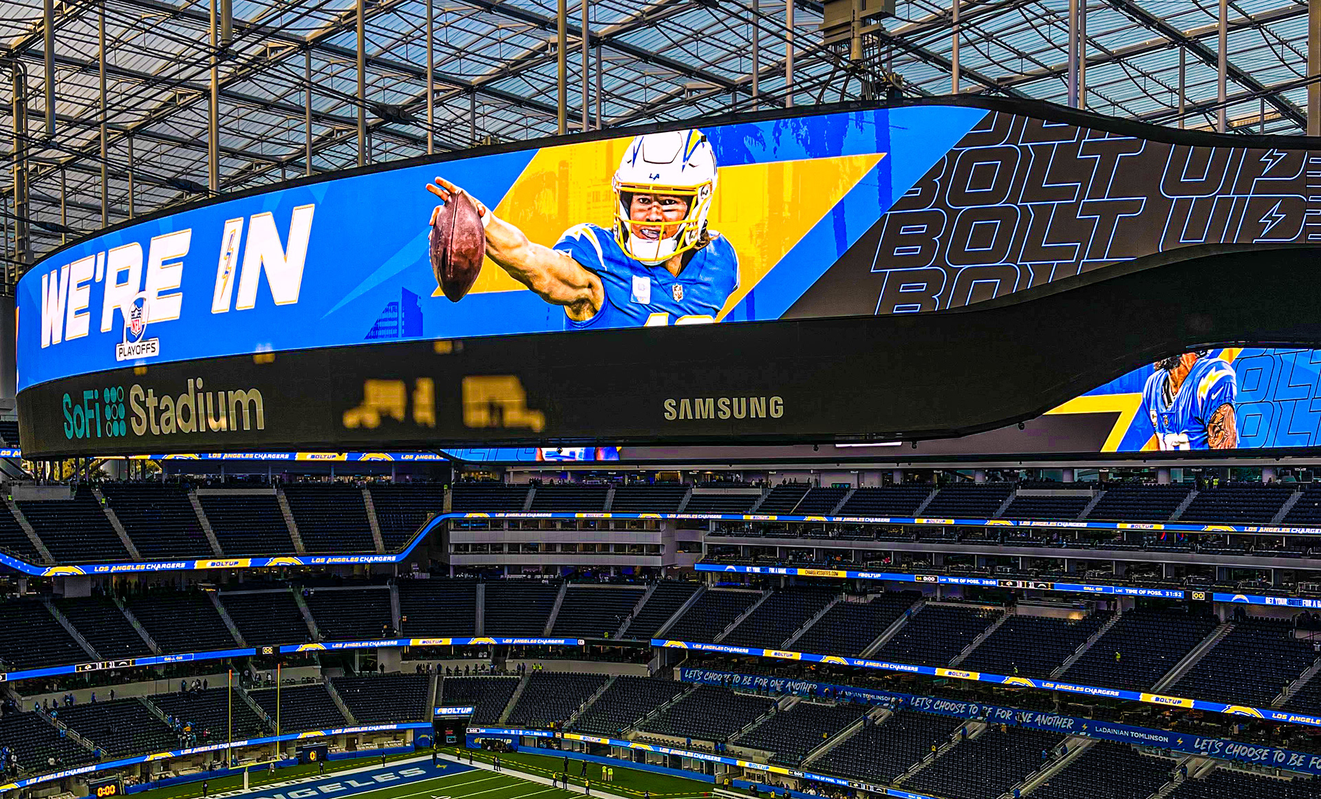 Directed the visual identity on the state-of-the-art Infinity Screen and LED ribbons. Situated in Inglewood, California, Sofi Stadium stands as an architectural marvel, boasting a seating capacity of over 70,000 and featuring a 2.2-million-pound circular video board – the Infinity Screen – as its centerpiece. My role involved conceptualizing and implementing graphic designs that seamlessly integrated with the stadium's cutting-edge technology. From vibrant animations to dynamic visuals, every element was meticulously crafted to enhance the spectator experience and contribute to the immersive atmosphere of this world-class venue.