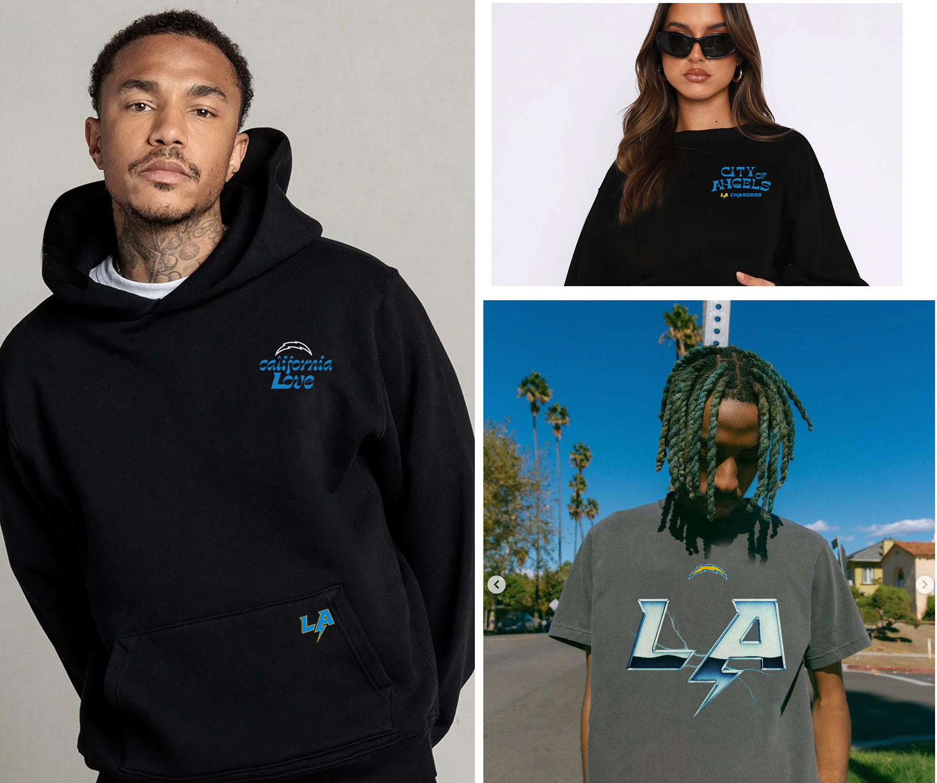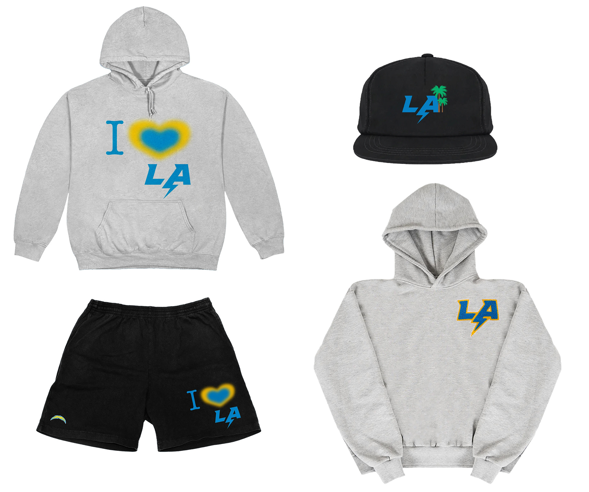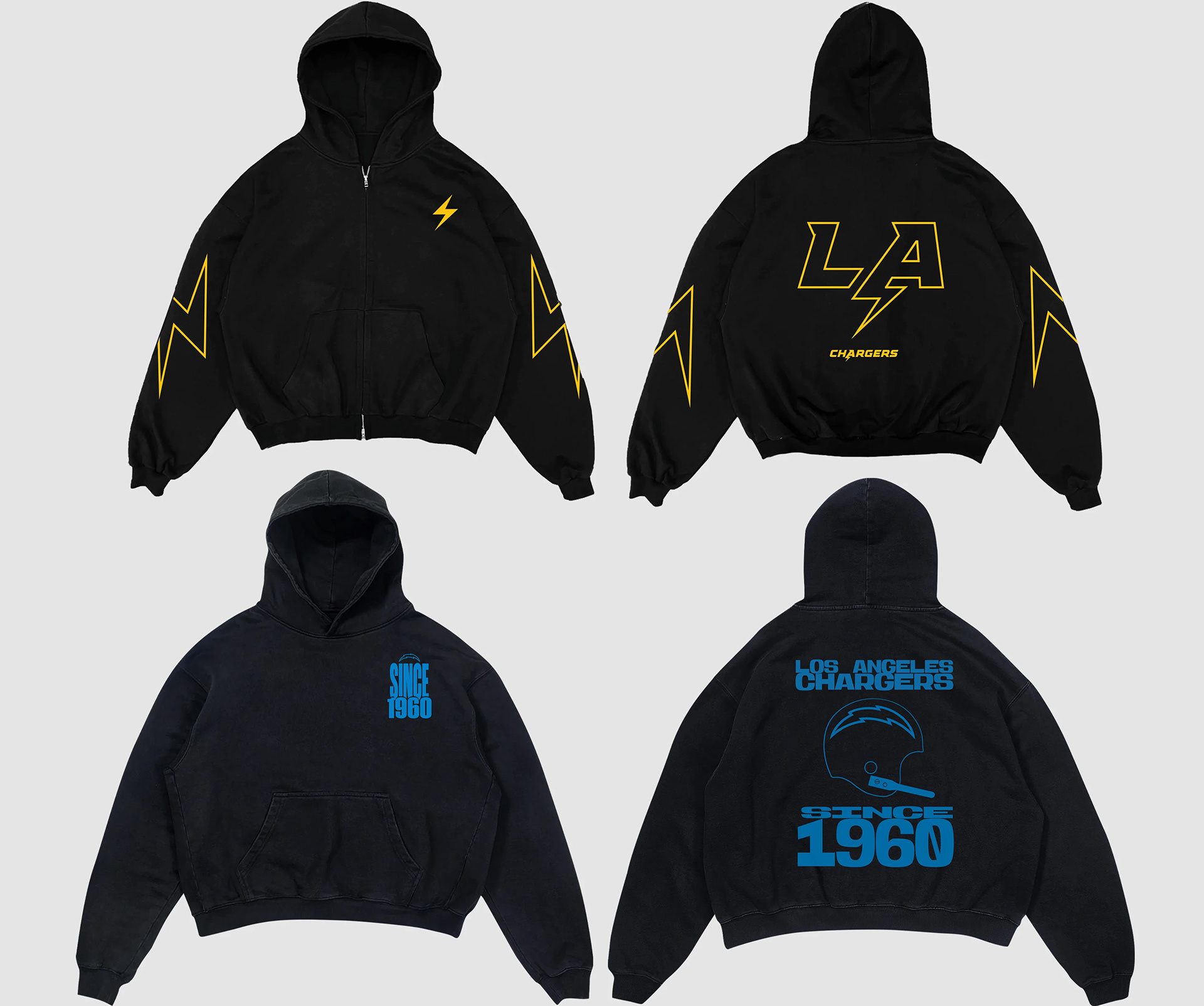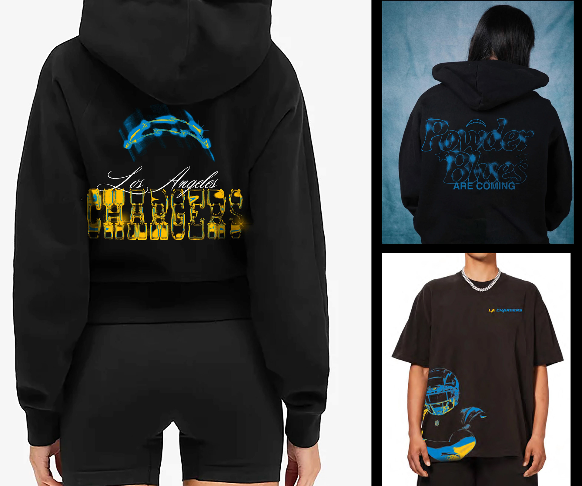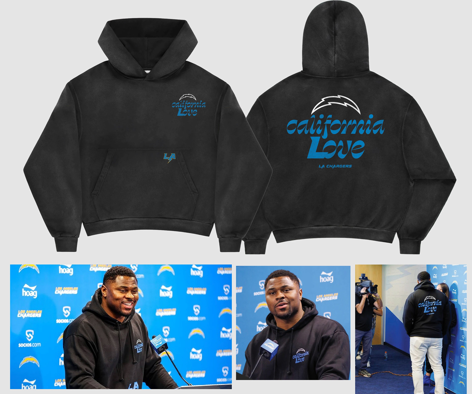 I created the ‘California Love’ hoodie as an exclusive design for the Chargers’ free agents. The hoodie quickly gained massive popularity, prompting the team to launch a fan giveaway that drew over 5,000 written submissions. Due to high demand and limited availability, the hoodie became so sought-after that fans began producing bootleg versions—underscoring both the cultural impact and desirability of the original design.