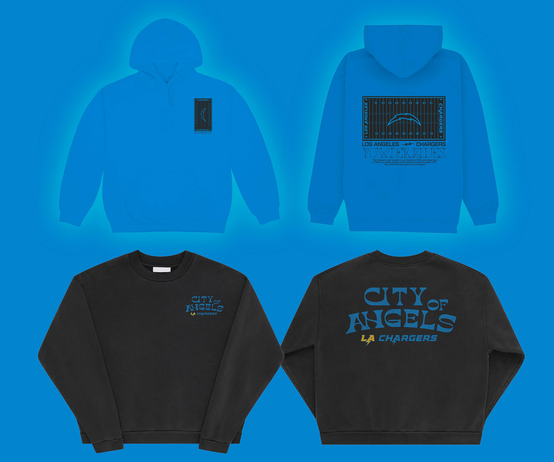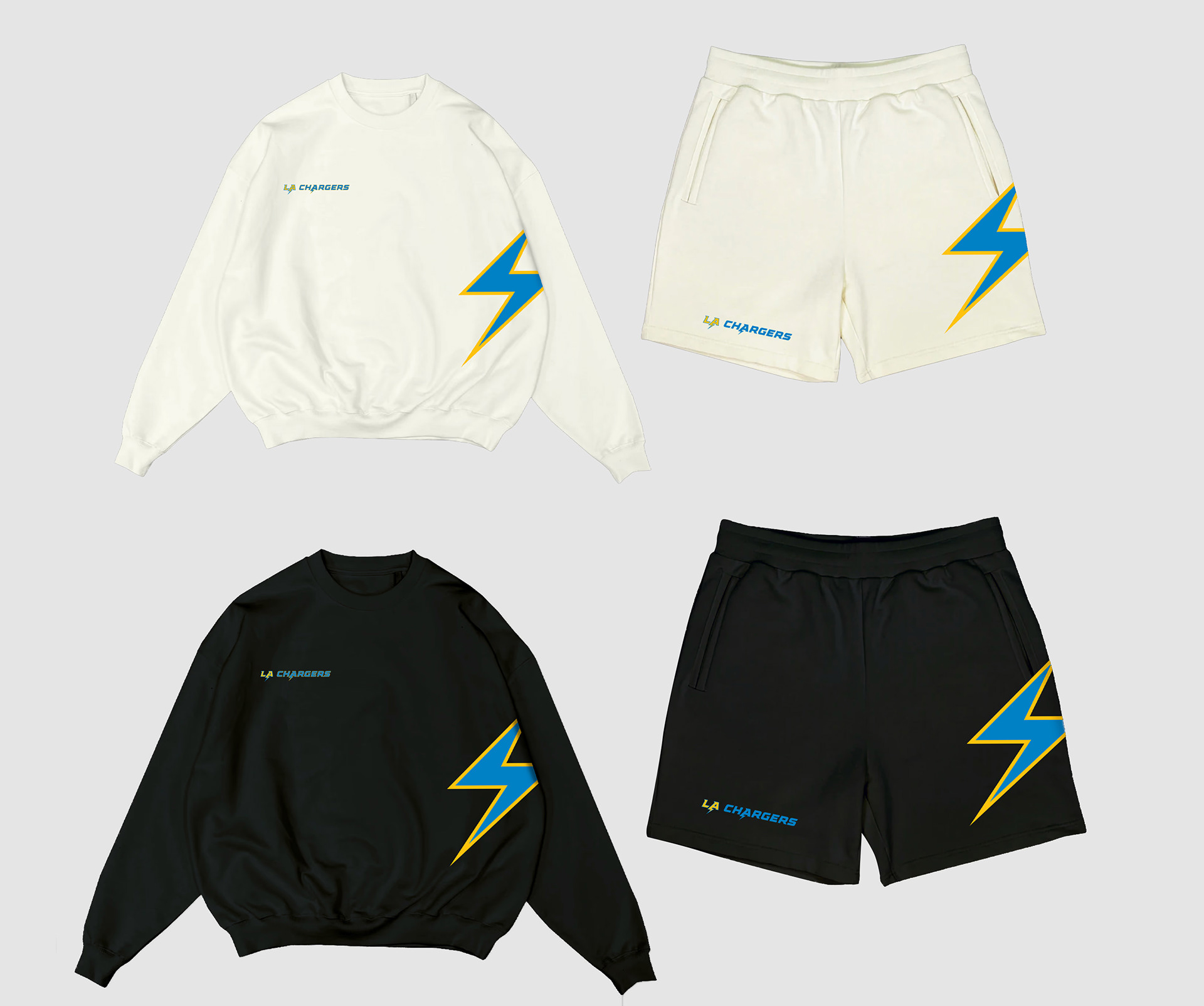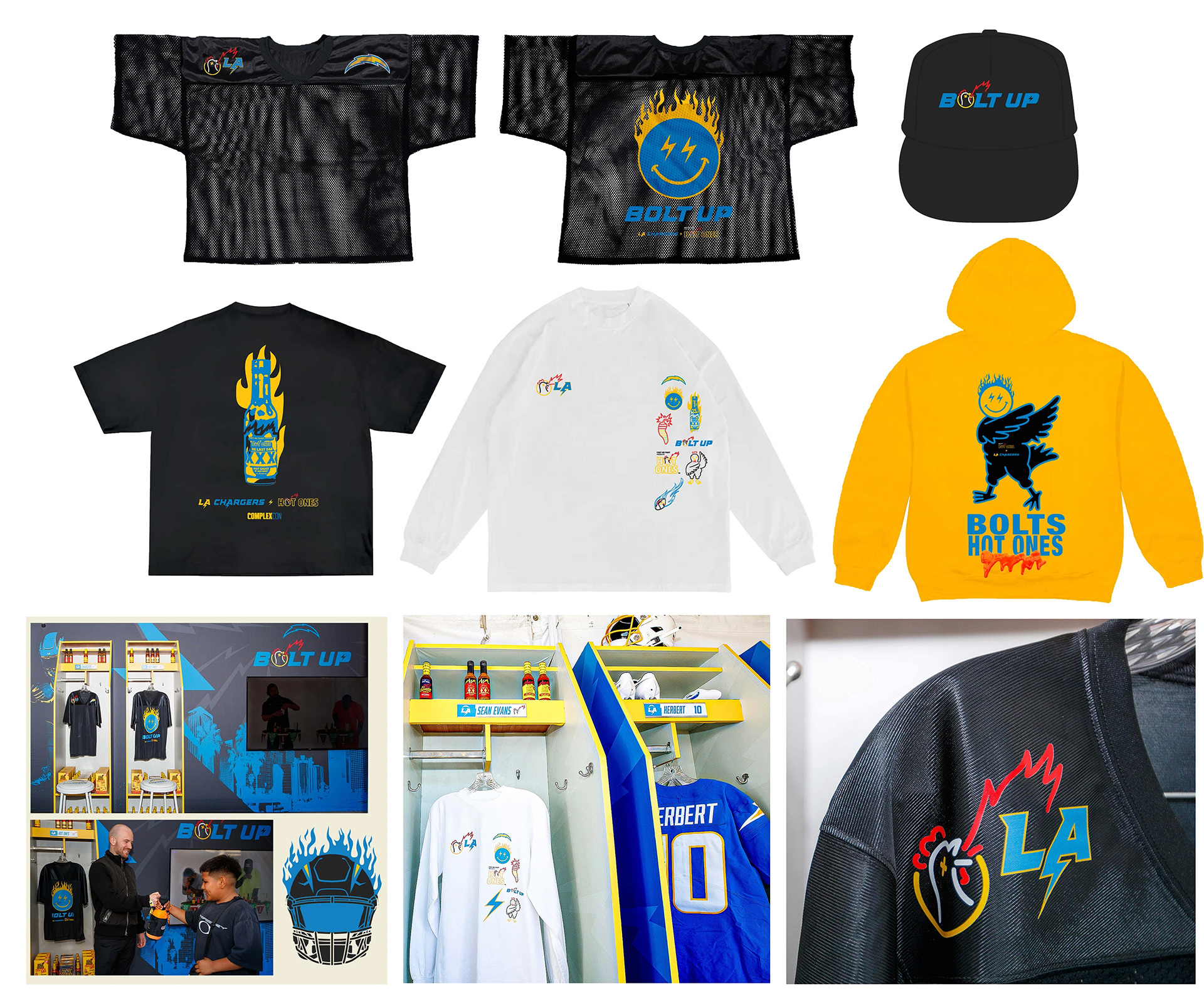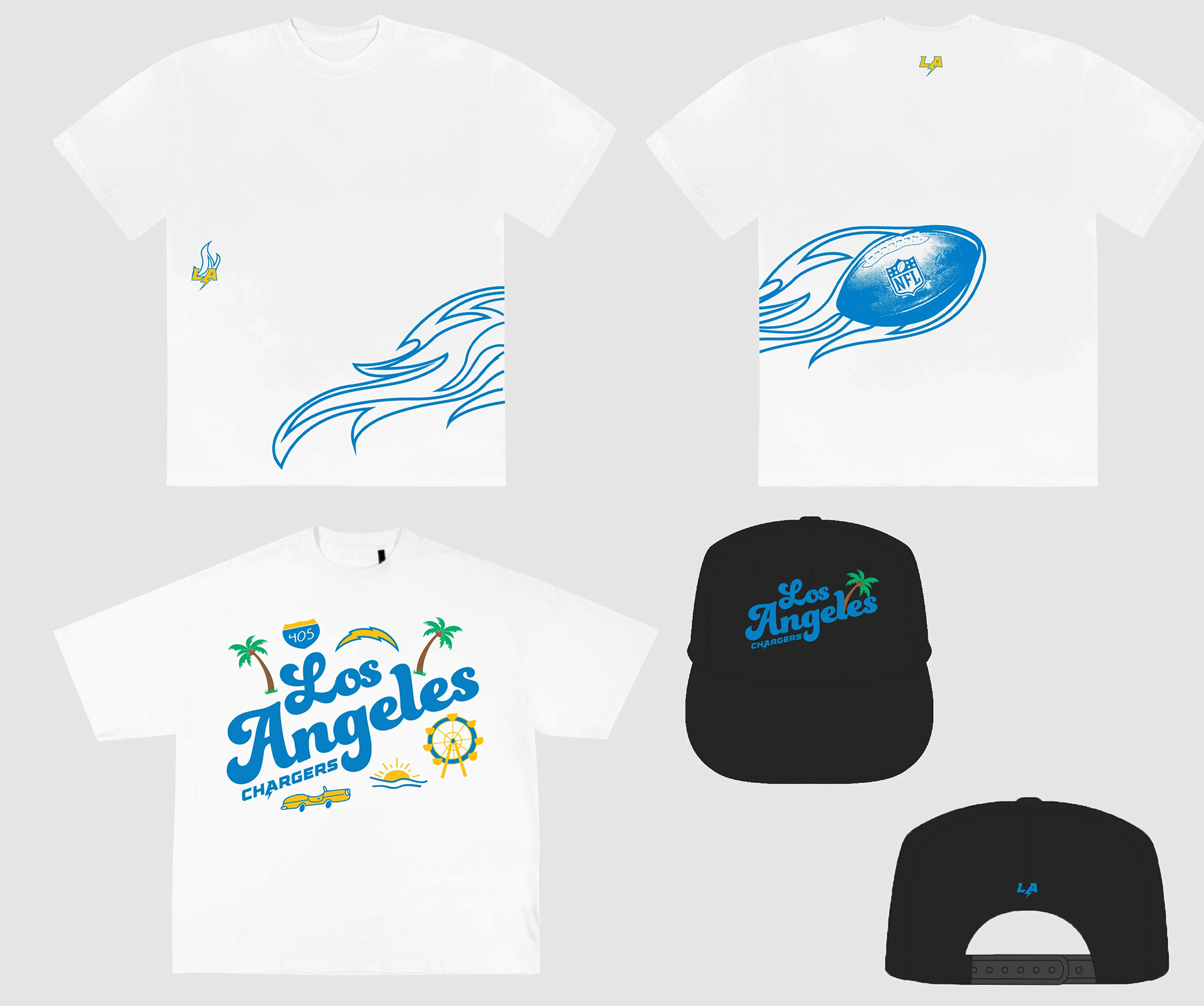 During my time as Creative Director for the Chargers, I led all brand andmerchandise initiatives, designing apparel and products for evergreenplacement in our online team stores and at SoFi Stadium. This role required constant collaboration with League licensees to develop special tentpole collections and manage high-demand restocks. The popularity of our merchandise skyrocketed, making it challenging to keep up with the growing demand from fans and internal teams eager for custom pieces for their special projects.