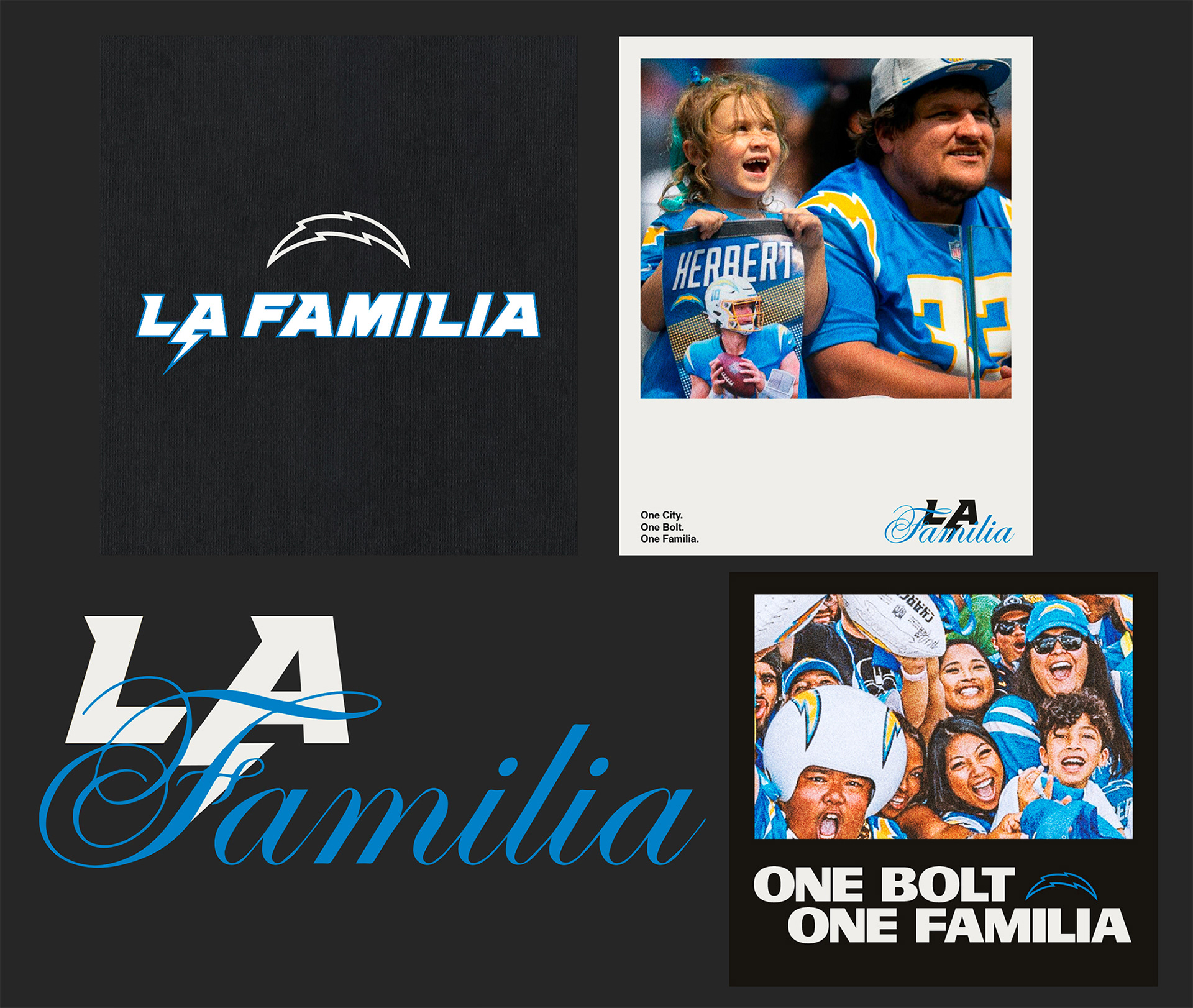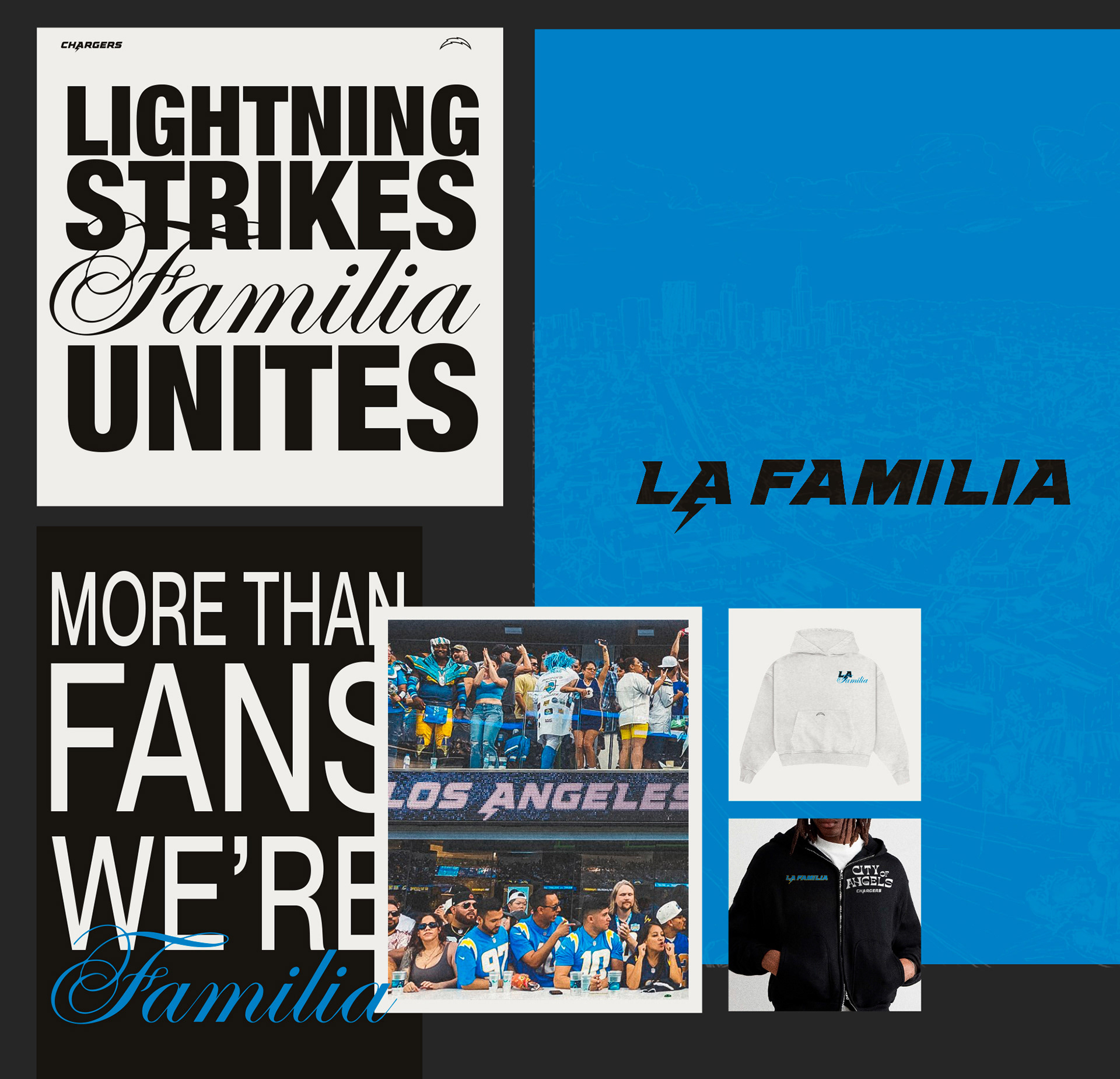 We submitted LA Familia to the National Football League (NFL) as an official Los Angeles Chargers slogan—and it was trademarked and added to the official brand assets.